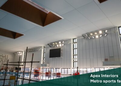 13,000 m2 of USG screwfix, 4,500 m of bulkheads / skylights engineered with USG stud to carry two layers of glass from 1m to 5m deep.