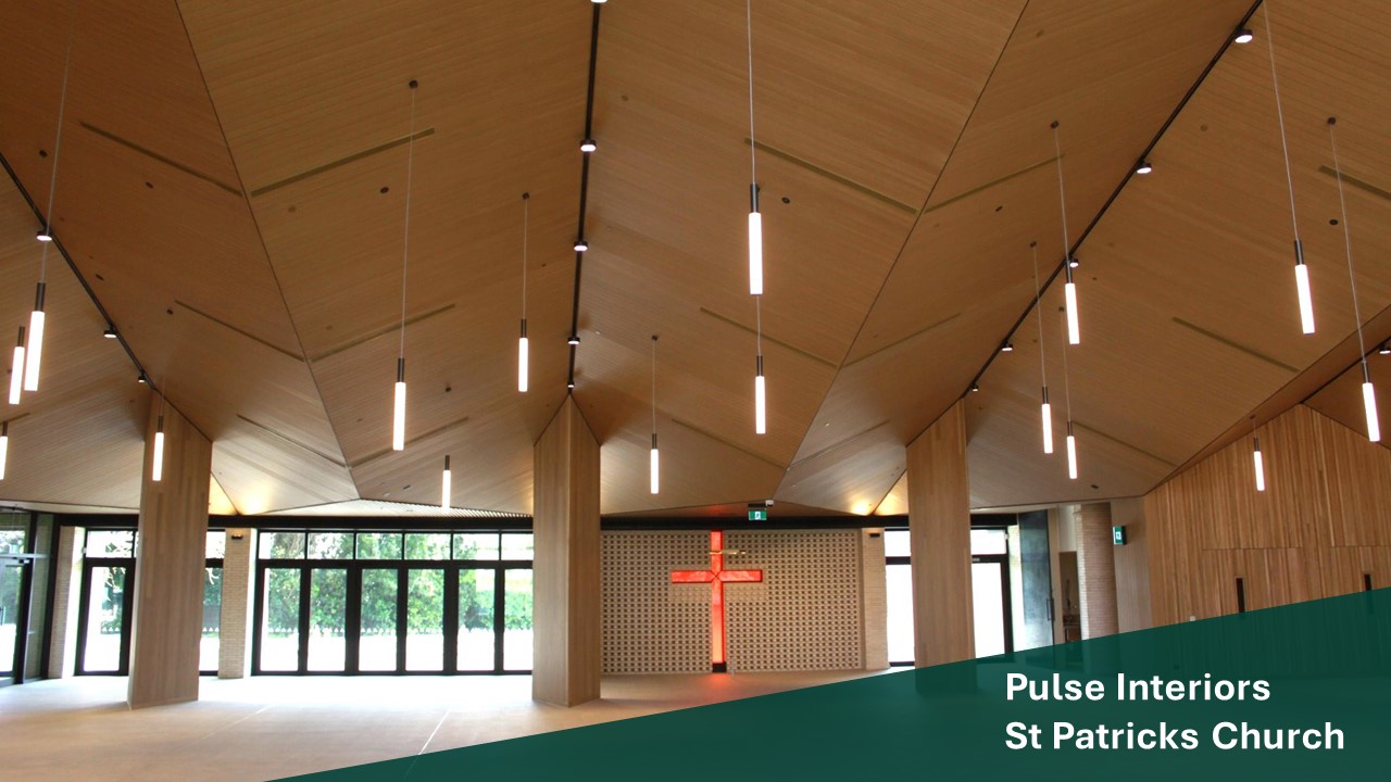 Control joints in raking ceilings had to be meticulously installed to run seamlessly into the negative detail lines throughout.